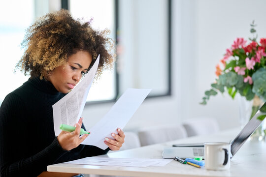 Young african man working with analitycs sitting at the beautiful working place with computer, laptop and documents