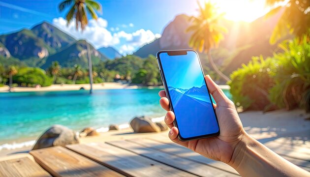 Closeup over shoulder view on mobile tablet pc blank screen in male hand