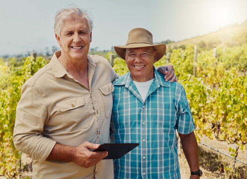 Happy farmers standing proud on organic farm
