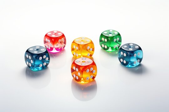different colours dices for fantasy dnd and rpg tabletop games. Board game polyhedral dices with different sides isolated on white background