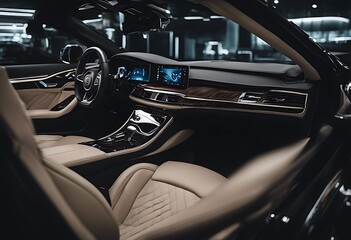 luxury dark interior car dashboard vehicle black automobile speedo wheel steering transport design speed transportation comfort seat shift gear tacho traffic opulent lever