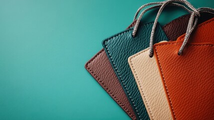 Multi-colored price tags in the air on neutral background , concept of Vibrant merchandise
