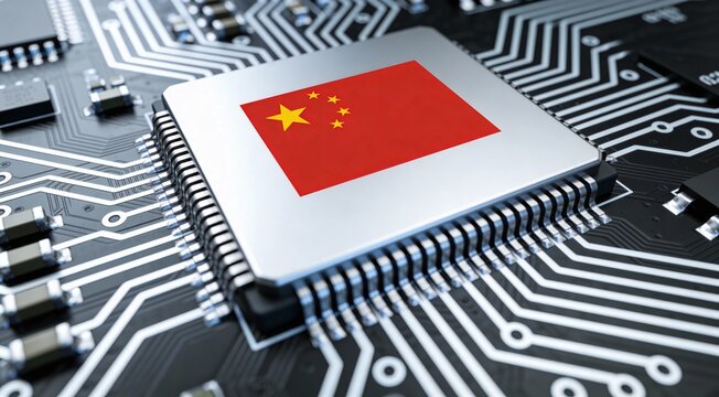 Taiwan flag with digital circuit overlay representing technology