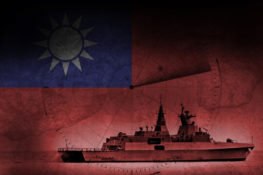 Taiwan Navy Frigate warship with flag and radar overlay