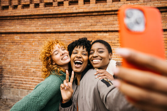 Big group of cheerful young friends taking selfie portrait. Happy people looking at the camera smiling. Concept of community, youth lifestyle and friendship