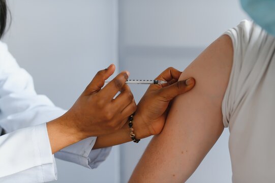 african doctor injecting a patient with a vaccine