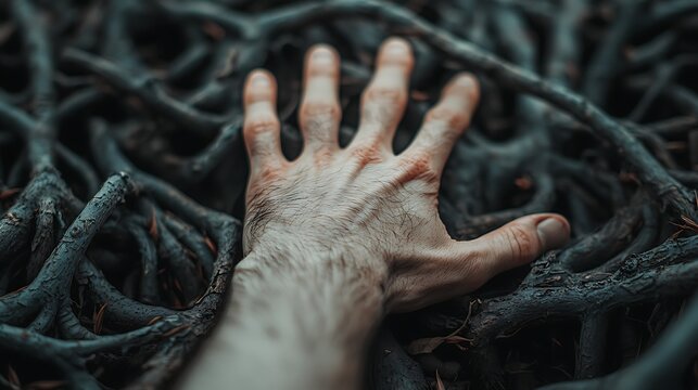 Tangled cables reflecting nature's path