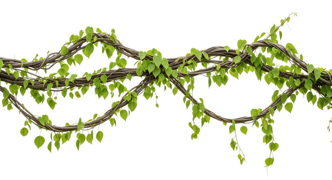 Tangled brown vines with numerous small green leaves forming a decorative garland isolated on a transparent background
