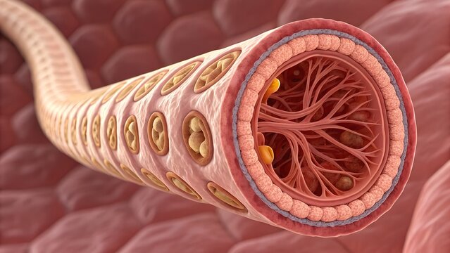Tapeworm segment, Taenia saginata gravid proglottid with clear structures intestinal parasite