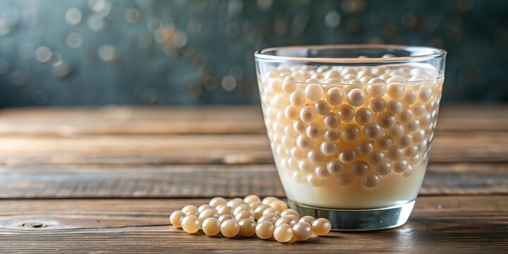 Iced Bubble Tea in Clear Plastic Cup, Refreshing Beverage with Tapioca Pearls, Asian Inspired Drink