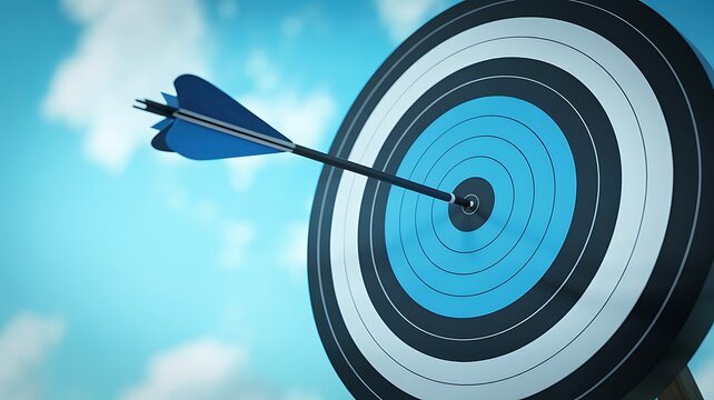 digital arrow hitting its target using data and cyber technologies, illustrating success in the digital marketing world. great for business achievement visuals and precise.