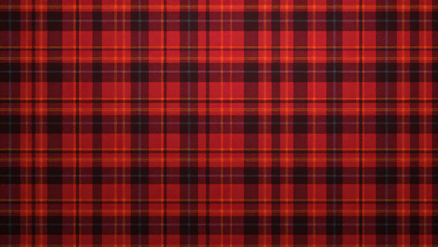 Red tartan plaid textile pattern featuring woven texture and classic scottish check design
