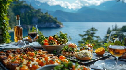 A variety of nutritious food items arranged tastefully on a table in a luxurious wellness hotel room.