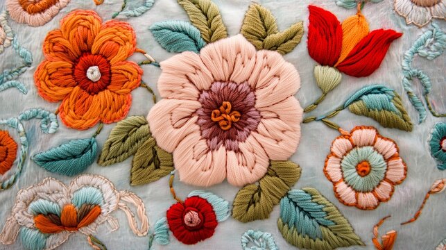 Crimean tatar traditional floral embroidery on felt