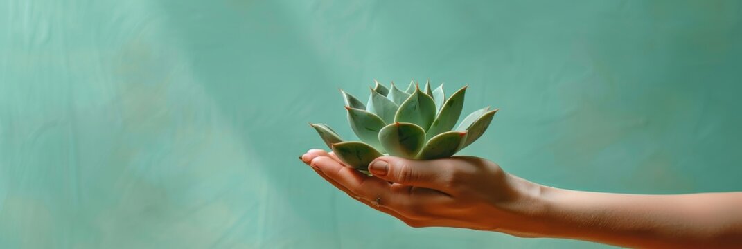 Closeup macro photo of teal succulent plant. Detailed geometric pattern of green blue leaves shows organic texture. Vibrant high-colored flora offers serene beauty, zen-like calm, perfect for
