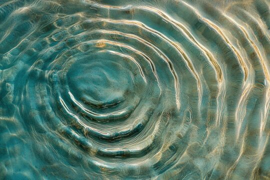 Concentric ripples on teal water, sunlight reflecting, creating a mesmerizing pattern.
