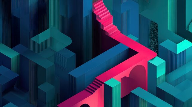 3D maze with glowing teal path and magenta exit