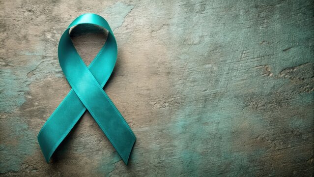 Teal awareness ribbon on a textured background, awareness, ribbon, teal, textured, background, healthcare, support