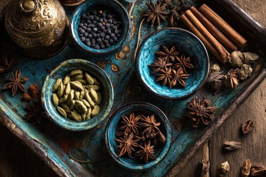 Preparing fresh coffee on wooden tray for relaxing morning ritual