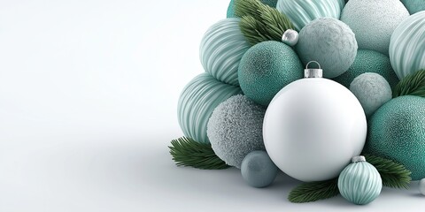 A Christmas decoration made from white and teal balls on an isolated background for festive holiday concept
