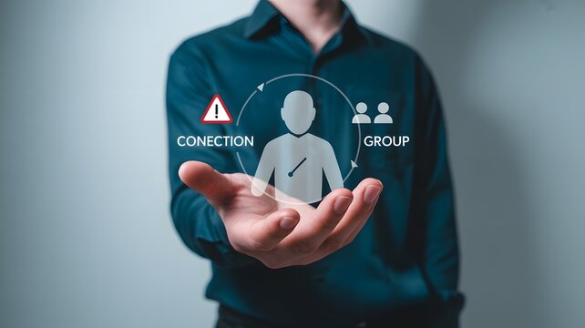 Man holding a holographic projection of a person with data points