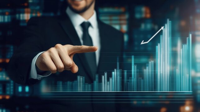 Analyzing business growth trends corporate office graphical data visualization urban environment professional viewpoint