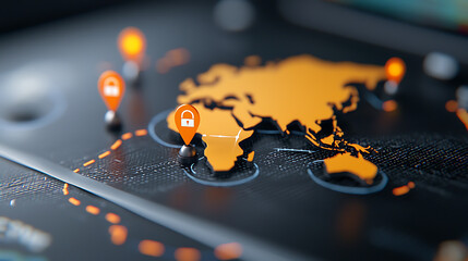 Global cybersecurity strategy map digital workspace infographic tech environment close-up view data protection insights