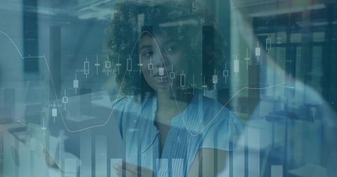 Businesswoman analyzing financial growth with graph overlays