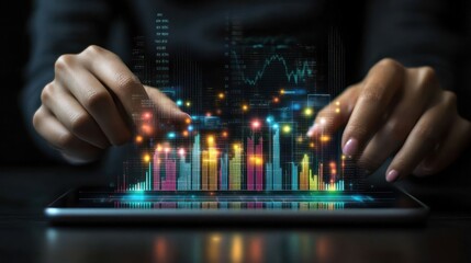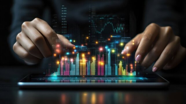 Digital financial data visualization with bar graphs and line charts