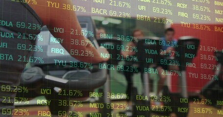 Busy business team reviews financial data and charts during a meeting. Digital graphs overlay create insight into performance and growth strategies. Scalp