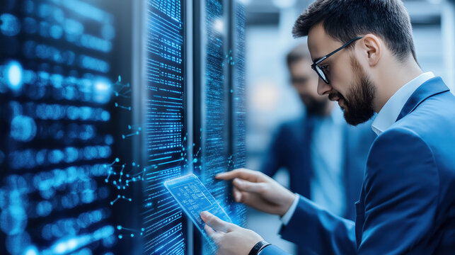 Data analysis action corporate office digital interaction high-tech environment close-up view innovation concept