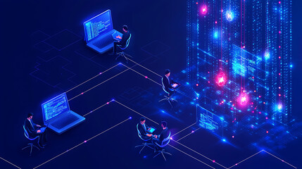 Data analysis event by professionals in a digital workspace virtual environment futuristic viewpoint technology focus