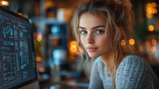 Coding in progress developer analyzing data office space digital workspace indoor environment close-up view technology insight