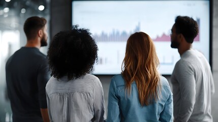 Business meeting analyzing data trends office environment digital presentation professional setting data insight