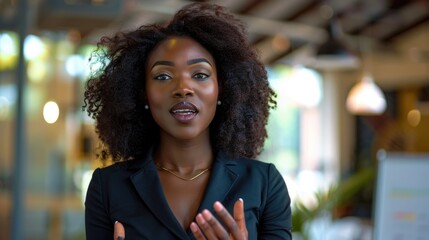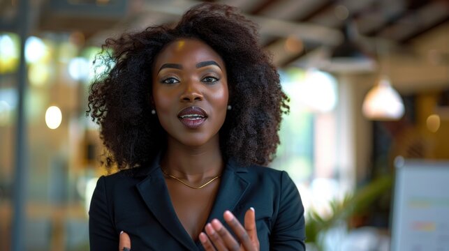 African American Businesswoman Leading Educational Workshop in Office Setting