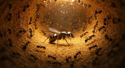 Ant Bridge: A group of ants form a bridge across a gap, showcasing their teamwork and determination. This image shows the beauty of cooperation and the power of unity.