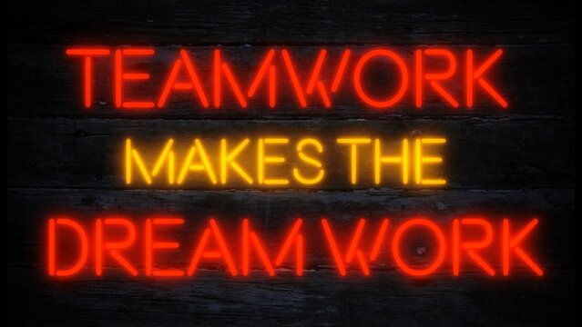 teamwork makes the dream work neon effect motivational business sign