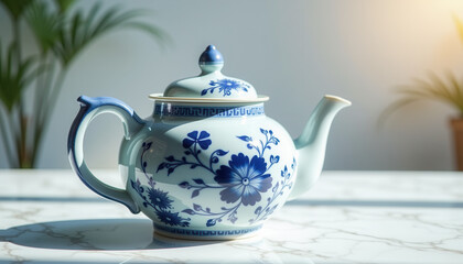 Elegant modern teapot inviting relaxation, warm layered ambiance