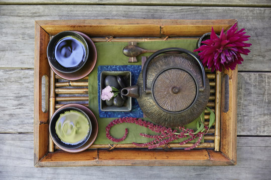 Japanese tea set on a Japanese tray