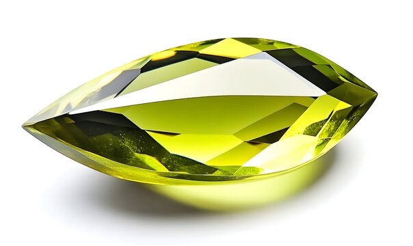 Yellow gemstone faceted in a teardrop shape on a white background for jewelry design