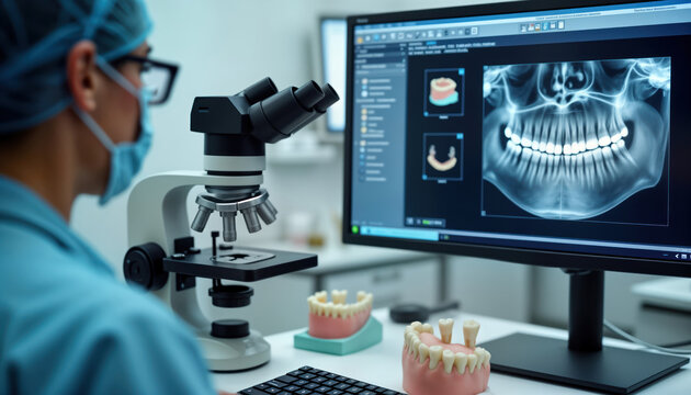 Futuristic 3d holographic head and data visualization in high-tech lab