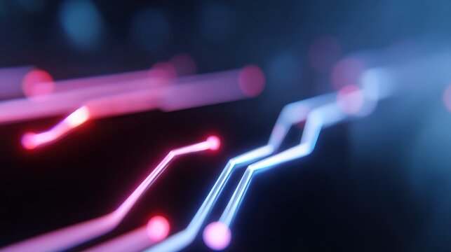 Futuristic network analytics with user nodes, dashed connections and neon trend lines