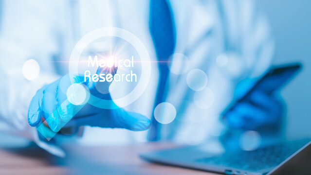 A doctor looks at a virtual screen, analyzes digital healthcare and network connectivity based on a modern interface, medical technology and a futuristic concept.