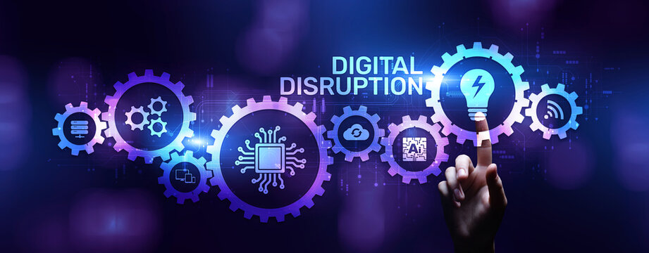 A activates a digital alert on a high-tech dashboard symbolizing disruption and urgent business response in a fast-evolving environment