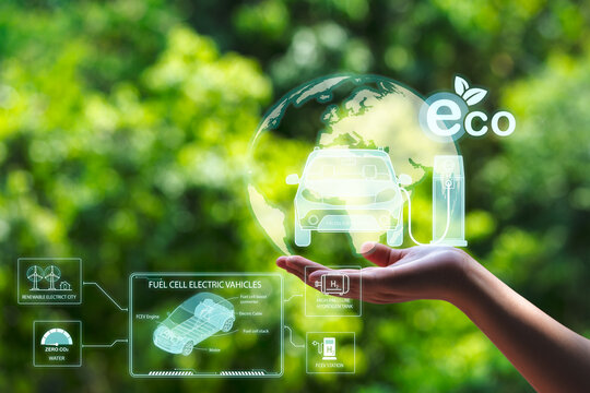Graphs Increase in electricity prices with background. Electric cars are charging.
