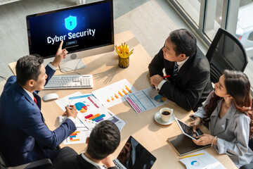 Cyber security system on computer screen protect private information snugly from hacker and cyber attack