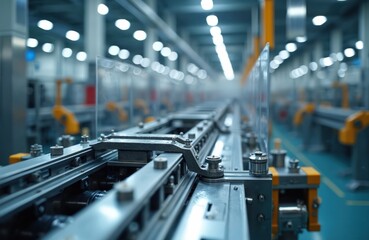 Inside Bright Advanced Semiconductor Production Fab Cleanroom with Working Overhead Wafer Transfer System
