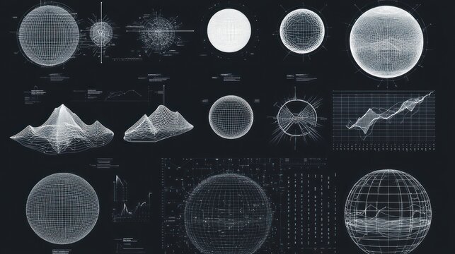 Digital interface with white data lines on black background