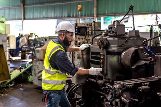 Industrial engineer man working with heavy machinery in manufacturing industry