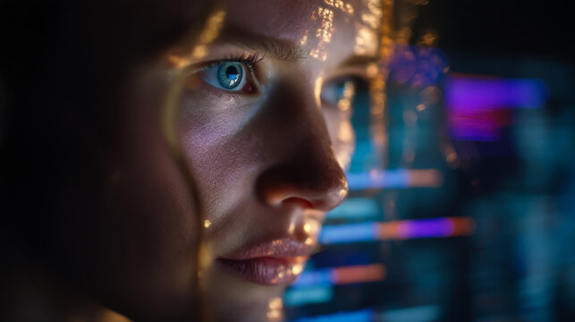 Woman engaging with virtual reality and futuristic interface technology